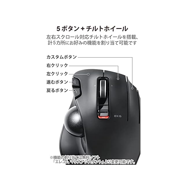 商品名:エレコム ワイヤレス トラックボールマウス EX-G 握りの極み 6ボタン チルトホイール(左右スクロール) ブラック M-XT3DRBK