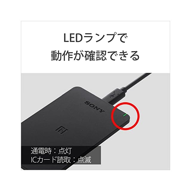 LEDを搭載しており、パソコンの接続やICカードとリーダー/ライター間の通信状態を点灯や点滅でお知らせします。
