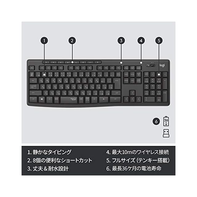 商品名:ロジクール ワイヤレスマウス キーボード セット MK295GP 静音 耐水 無線 USB接続 Unifying非対応 MK295 グラファイト 国内正規品