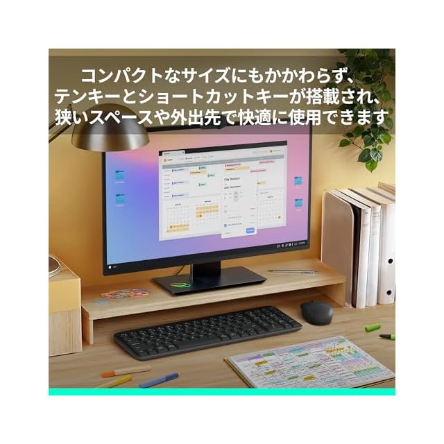 テンキー、矢印キー、便利なFキーショートカットを搭載しながらも、コンパクトなレイアウトでスペースを取りません