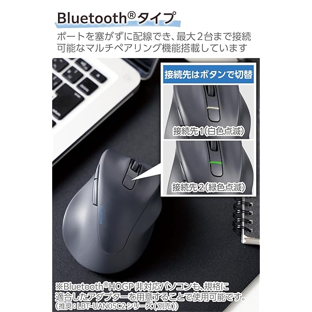 商品名:エレコム マウス ワイヤレスマウス EX-G Bluetooth 静音 Mサイズ 5ボタン マルチペアリング 「AskDoctors評価サービス」認証 抗菌 ブラック M-XGM30BBSKABK
