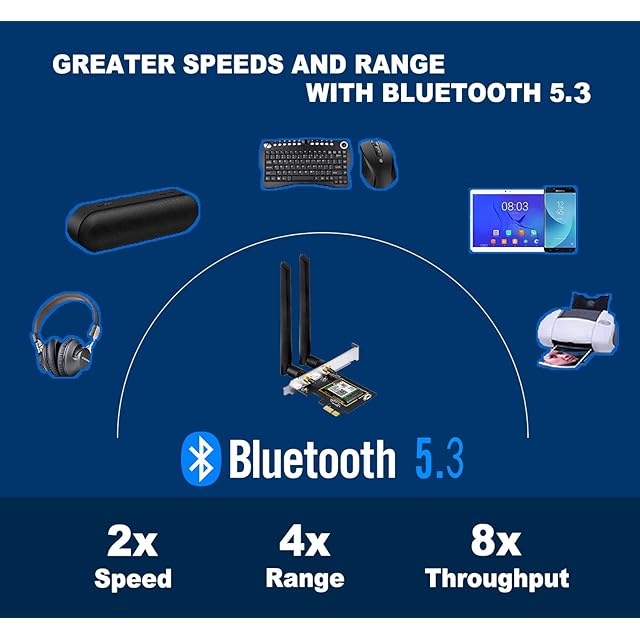 ➤【Bluetooth 5.3 TWSイヤホン対応】 Bluetooth5.3はBluetooth4.2より4倍の範囲を提供し、伝送速度を倍増させ、全体の電力を低減する。このWi-Fi6 PCIe無線アダプターは、Bluetooth TWS耳栓、ヘッドホン、キーボード、マウス、その他のデバイスにより多くの便利さと需要を提供します。