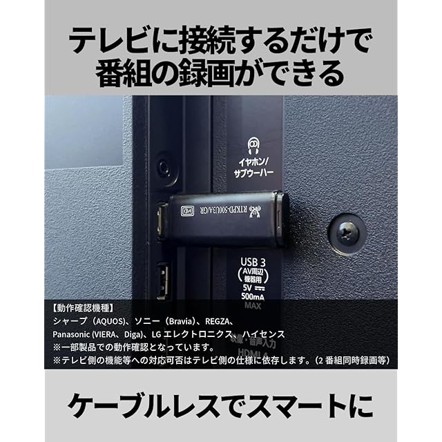 ✅【テレビの録画用ストレージに使えます】 外付けUSBドライブへの録画に対応した各社のテレビに接続可能です。 【動作確認機種】 シャープ(AQUOS)、ソニー(Bravia)、REGZA、Panasonic (VIERA、Diga)、LGエレクトロニクス、ハイセンス ※一部製品での動作確認となっています。 ※テレビ側の機能等への対応可否はテレビ側の仕様に依存します。(2番組同時録画等)
