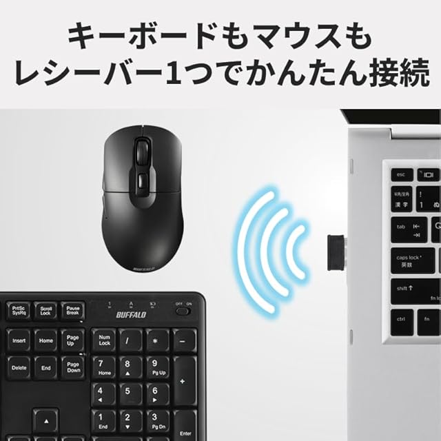 商品名:バッファロー 静音 キーボード マウス セット 無線 2.4GHz フルキーボード 109キー 日本語配列 5ボタン BlueLED ブラック BSKBW345SBK