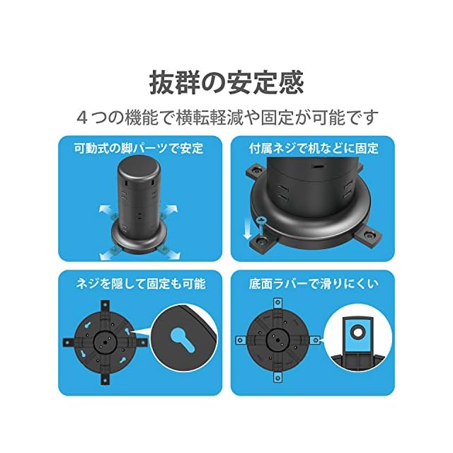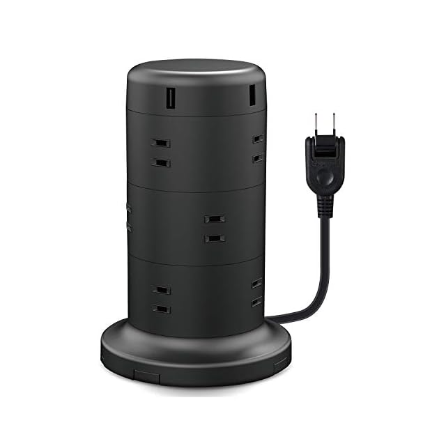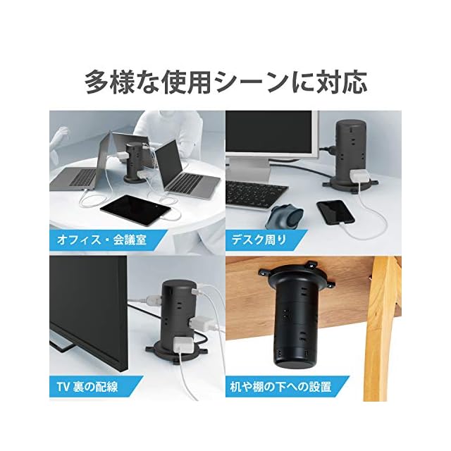商品名:エレコム 電源タップ タワー型 延長コード [ 12個口 & USB×5ポート ] 固定パーツ付 雷ガード ほこりシャッター 2m ブラック ECT-0720BK