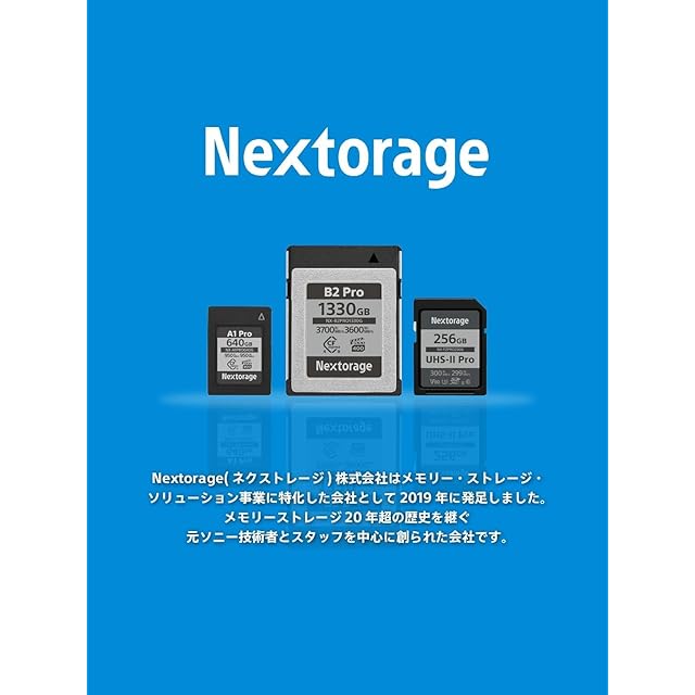 Nextorage (ネクストレージ) について:Nextorageはソニーカメラ用のメモリーカードを20年間以上開発してきた元ソニーエンジニアメンバーが立ち上げた日本の会社です。クリエイティブからエンターテインメントまで、強い信頼性が求められる様々なシーンに最適化した製品を提供しています。