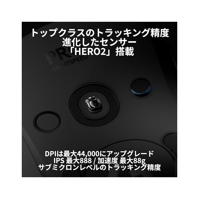 アップグレードした「HERO2 センサー」搭載、精度がさらに向上/最大44K DPIと888 IPSを超えるトラッキングでプロフェッショナル向けの高精度に対応