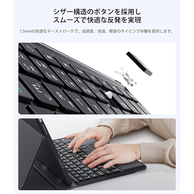 【JIS日本語配列キーボード】このiPad A16 キーボードはJIS規格準拠の標準日本語配列のキーボードでレイアウトを採用し、かな入力と英語入力も使えます。また音量調整やメディアプレーヤーの操作などの12種類マルチメディアキーを搭載して快適なタイピングを実現します。ブロガー、作家、デザイナー、専門家、学生など誰にも最適なBTキーボードです!