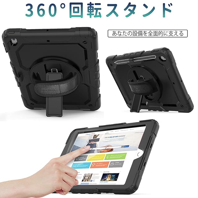 SEYMAC stock iPad 第9世代 8世代 7世代 ケース 耐衝撃 頑丈 落下保護 360°回転スタンド 調節可能 頑丈 丈夫 ハンドストラップ ペン収納 ショルダーストラップ ハード 全面 フィルム 衝撃保護 現場 工事現場用 子供 キッズ 蓋なし 横置き 縦置き iPad 9世代/8世代/7世代 10.2’’ 2021 2020 2019 ケース 10.2インチ A2602 A2603 A2604 A2605 A2270 A2428 A2429 A2430 A2197 A2198 A2200 ipadだい9世代 カバー ipad だい9世代ケース ipad 9世代 ケース