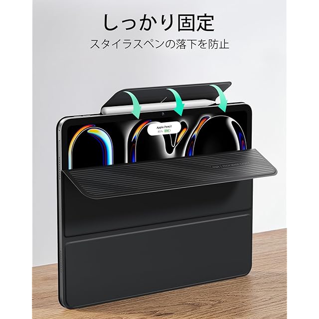商品名:ESR iPad Pro 13インチ ケース(M5/M4、2025/2024) 専用 強力マグネット吸着式 スリムな三つ折りスタンドケース オートスリープ/ウェイク機能 Pencil Pro/USB-C完全対応 耐久性保護 Reboundシリーズ ブラック