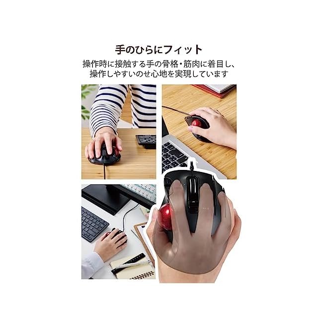 商品名:エレコム USB トラックボールマウス 5ボタン + 減速スイッチ + チルト機能 有線 赤色ボール標準搭載モデル 親指操作タイプ ブラック M-XT2URBK-G