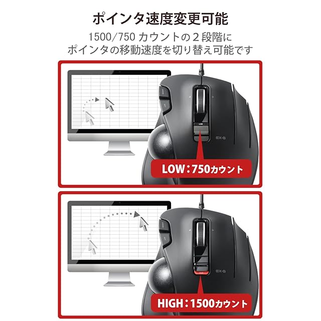 直径2.5mmの大型人工ルビーを支持球に採用。確かな基本性能とかつてない新機能を搭載し、進化したポインタ追従性を実現する親指操作タイプのUSBトラックボール。