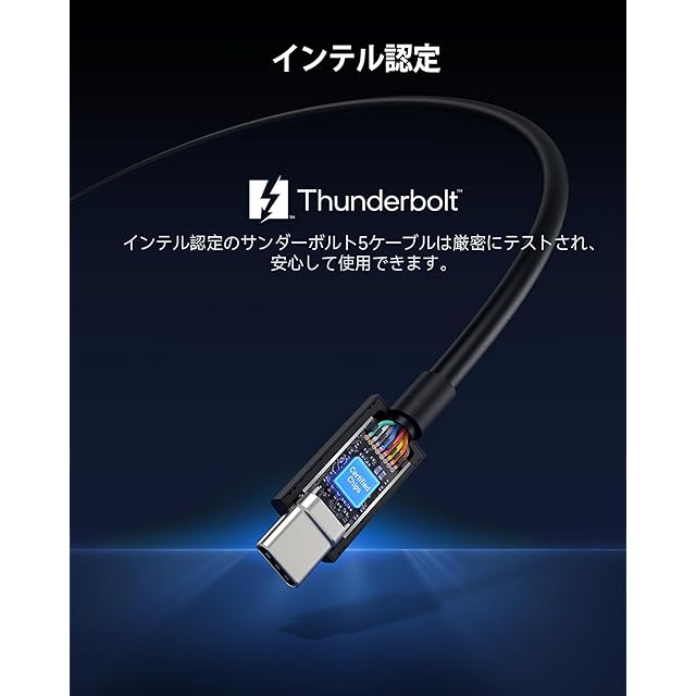 堅牢性と信頼性: 品質に細心の注意を払って作られたこのThunderbolt 5ケーブルは、広範なケーブルテストと品質監査を含むIntelのThunderbolt認定基準を満たしています。このため、接続するたびに信頼性が高く安定した接続がされ、プロフェッショナルが信頼できる安心感と安定したパフォーマンスを提供します。