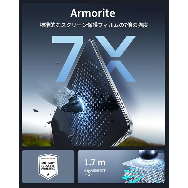 【付属品】:Armoriteスクリーン保護フィルム(2枚)、クリーニングキット×2、自動ホコリ除去UltraFitトレイ、取扱説明書。