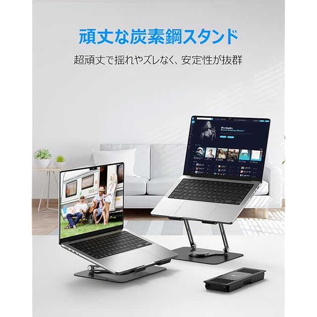 【頑丈なカーボンスチールスタンド】本体は、耐久性と安定性に優れたカーボンスチールで作られています。揺れやズレがなく非常に頑丈で、最大9kgを支えることができます。ゲームやノートパソコンでの作業に適しています。