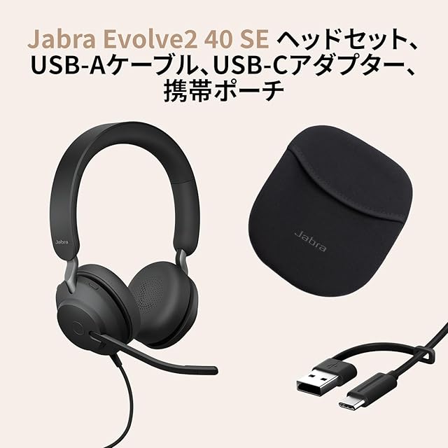 商品名:【2025年モデル】Jabra Evolve2 40 SE UC Stereo C/A 両耳有線 マイク付き USB-C/USB-A接続 ノイズキャンセリング 1日中快適なメモリーフォームイヤークッション Web会議最適
