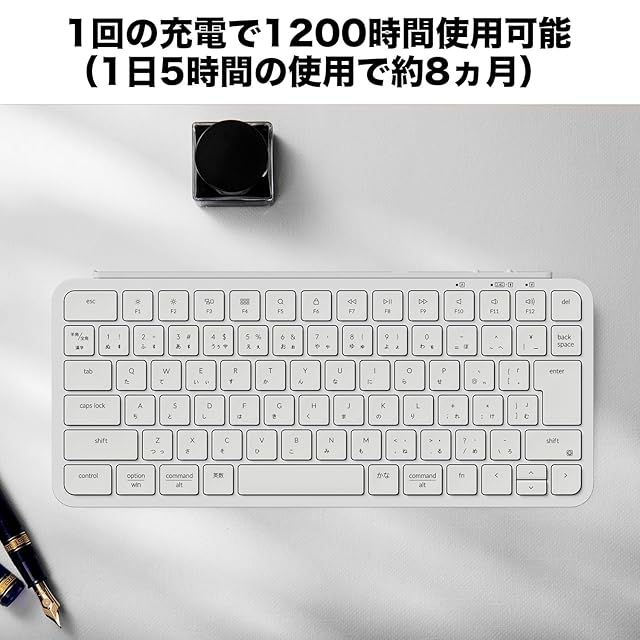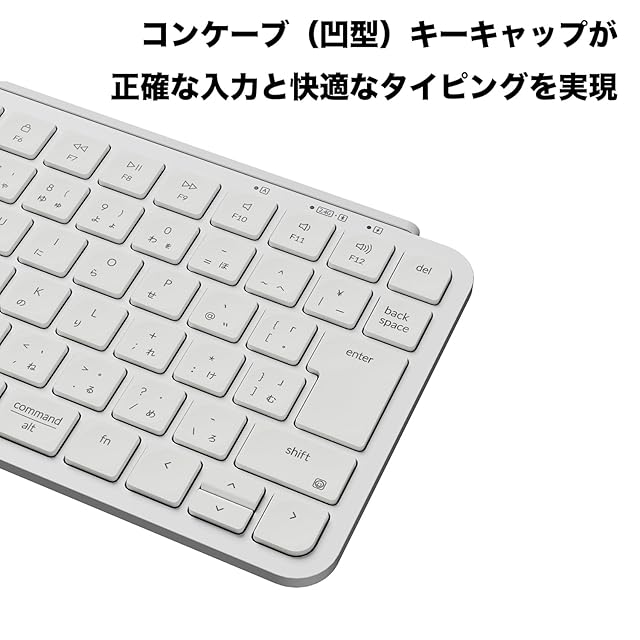 【1回の充電で1200時間使用可能】 最大1200時間のバッテリー寿命で、途切れることなく使用できます。また、凹型のコンケーブキーキャップは正確な入力をし、指に自然にフィットする快適なタイピングを実現します。