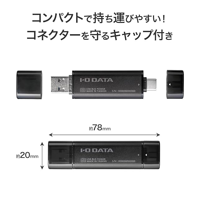 商品名:IODATA スティックSSD 2TB USB-A Type-C 両対応 USB10Gbps USB 3.2 Gen 2対応 読込1000MB/s 【iPhone/iPad/Windows/Mac/PS5】小型 ポータブル 日本メーカー SSPQ-USC2/E
