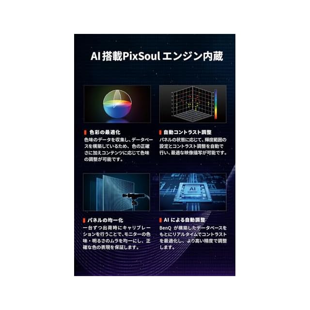 AIが独自のアルゴリズムに基づき、コンテンツや環境に合わせて色味を調整するPixSoulエンジン搭載