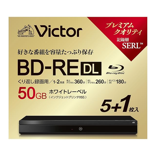 商品名:Victor(ビクター) くり返し録画用 ブルーレイディスク BD-RE DL 50GB ホワイトプリンタブル 片面2層 1-2倍速 スリムケース VBE260NP6J6 (6枚(5+1枚))