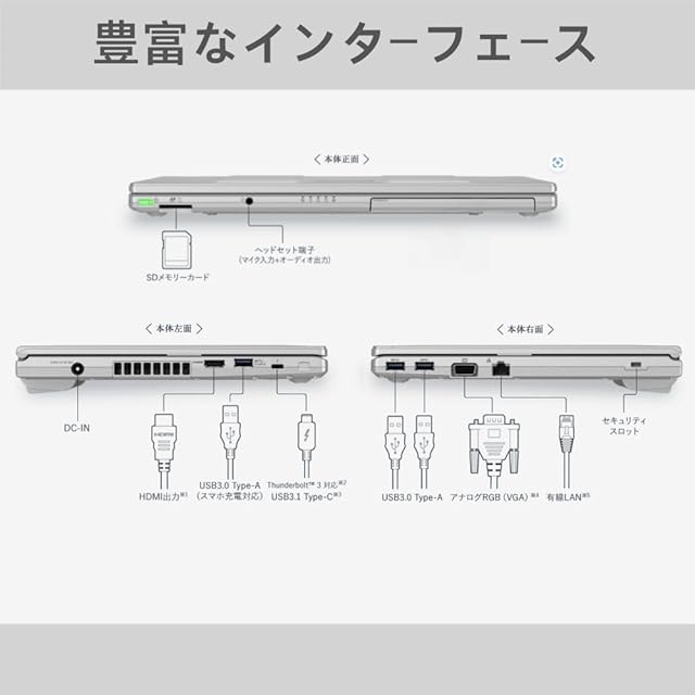 【豊富な接続端子】 HDMI、VGA、USB、WiFi、WEBカメラを搭載し、ビジネス会議・オンライン授業・リモートワークに幅広く活躍。