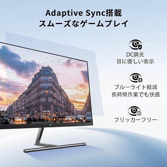 【ブルーライト軽減&フリッカーフリーで目に優しい】ハードウェアレベルでのブルーライトカット技術を採用。フリッカーフリー&DC調光により、長時間の作業やゲームでも目の負担を軽減します。