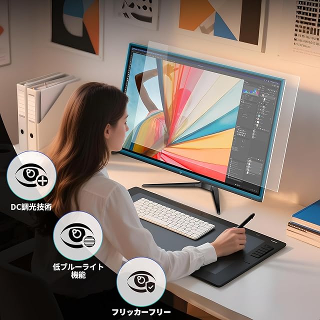 【目に優しい設計で長時間作業も快適】ノングレア(非光沢)コーティングで反射を抑え、フリッカーフリー技術により画面のちらつきを低減。さらに低ブルーライトモードを搭載し、長時間のPC作業やゲームプレイでも目の疲れを軽減。