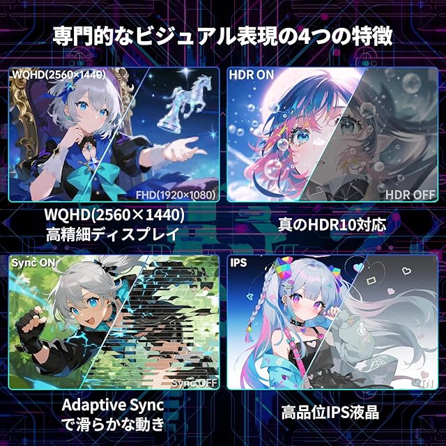 【スムーズな100Hz(120Hz OC対応)表示】基本100Hzのリフレッシュレートに加え、120Hzまでオーバークロック可能。Adaptive Sync(FreeSync対応)技術により、ゲームや動画再生時の画面のティアリングやカクつきを軽減。FPSやレーシングゲームなど、高速動作が必要なコンテンツでも滑らかな映像を提供。