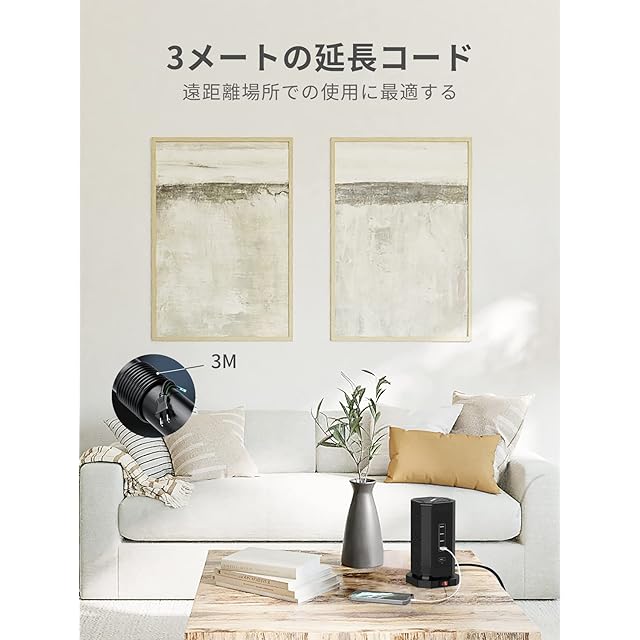 【雷ガード機能&3m延長コード】このコンセント タワーは雷サージから電子機器を守るために、高性能雷サージ吸収素子を内蔵しており、雷によるパソコンやAV機器への被害防止に効果的です。断面積1.25mm²の銅線ケーブルを採用しており、導電性に優れ、発熱も少なく、より安全に使用できます。それに加えて、過負荷、過電圧、過充電、過熱、ショートなどからの多重保護で、お客様とお使いの家電の安全を守ります。延長コードは3メートルで、コンセントから距離があっても配線可能です。高級感のあるオシャレな外観で、家庭、オフィス、会議室、パーティーなどでも活用できます。
