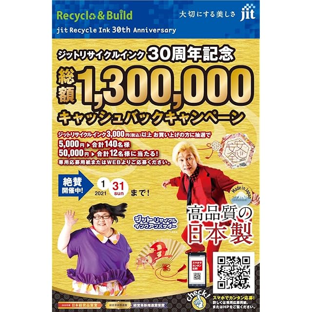 商品名:ジット キャノン(Canon)対応 リサイクル インクカートリッジ BCI-325PGBK2P ブラック対応 2本セット JIT-NC325B2P