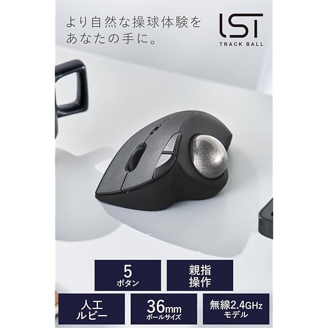 商品名:エレコム ワイヤレス トラックボール マウス 無線2.4GHz IST (イスト) シリーズ 5ボタン 親指操作 人工ルビー支持 Windows/mac/Chrome ブラック 1 M-IT10DRABK