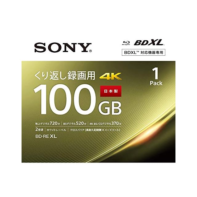 商品名:ソニー(SONY) 【1枚(地デジ約12時間)ドラマ・アニメまとめ保存】 ソニー / 1枚入り / ビデオ用ブルーレイディスク / くり返し録画用 / BD-RE / 1枚あたり100GB(地デジ約12時間) / 1-2倍速 / ディスク用ケース付属 / BNE3VEPJ2