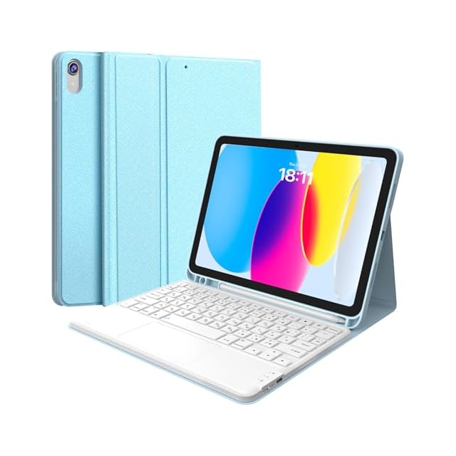 商品名:Earto for iPad 第10世代 キーボード ipad 2022モデル 10.9インチ タッチパッド付き JIS基準日本語配列 2台デバイスマルチペアリング ipad 10世代 キーボード 脱着式 多角度調整 ペンシルホルダー付き スマート軽量 薄型 type-c充電式 マグネット付き A2696/A2757/A2777対応 ブルー