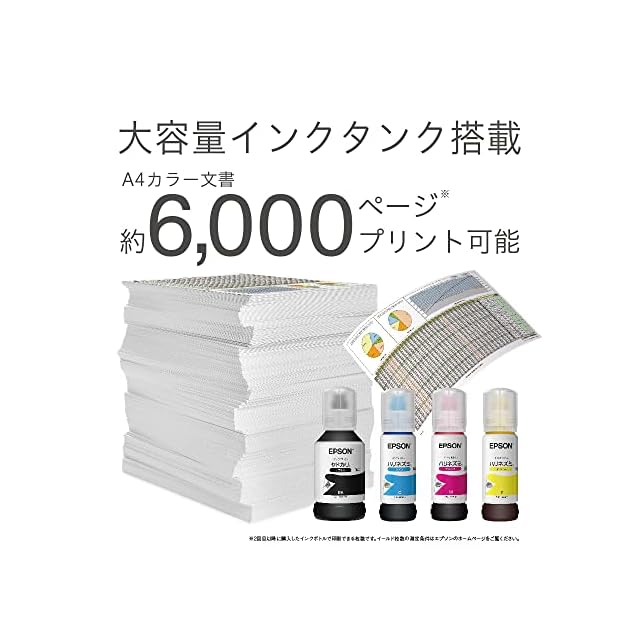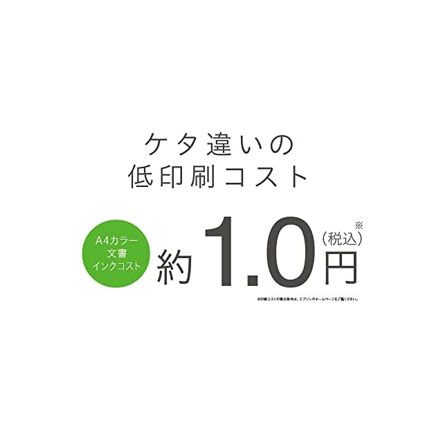 ケタ違いの低印刷コスト&大容量 A4モノクロ文書で約0.4円(税込)(注1)、A4カラー文書が約1.0円(税込)(注1)というケタ違いの低印刷コストを実現。さらに大容量インクタンク搭載で、気軽にジャンジャンプリントできます。
