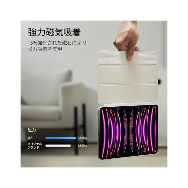 商品名:ESR iPad Pro 12.9 ケース (2022/2021/2020、第6/5/4世代) iPad Air 13インチ 専用カバー (2025/2024) マグネットス吸着式 Pencil2対応 三つ折りスタンド オートスリープ・ウェイク Rebound 磁気 ホワイト