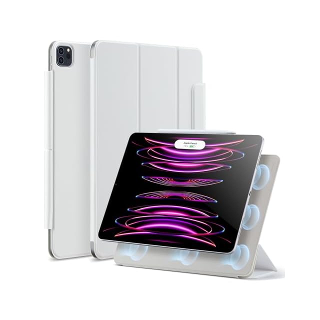 ESR iPad Pro 12.9 ケース (2022/2021/2020、第6/5/4世代) iPad Air 13インチ 専用カバー (2025/2024) マグネットス吸着式 Pencil2対応 三つ折りスタンド オートスリープ・ウェイク Rebound 磁気 ホワイト