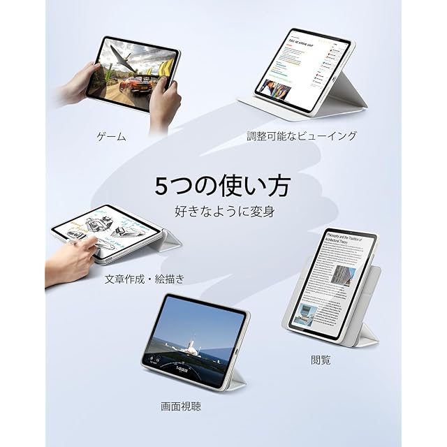 【複数使用モード】:縦向きと横向きの調整が可能な6つのユニークな使用モードがあり、iPadを好きなように変身させることができます