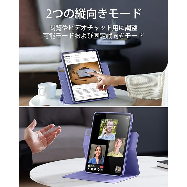 商品名:ESR iPad Air 13インチ ケース (2025/2024、M3/M2) 専用 Pencilホルダー付き 取り外し可能マグネットカバー 縦置き/横置きスタンド Pencil Pro/USB-C完全対応 Rebound 360シリーズ パープル