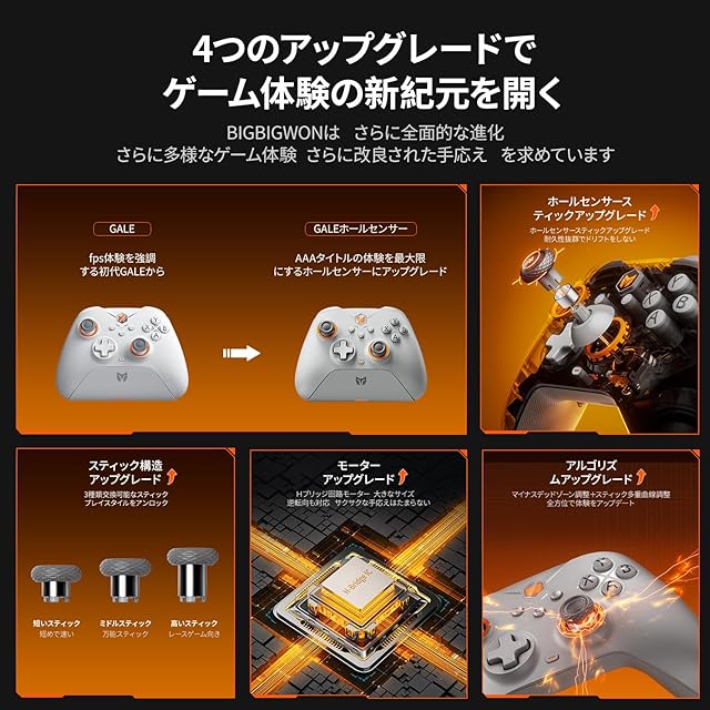 商品名:コントローラー、BIGBIG WON Gale Hall コントローラー、モーションコントロール、ホールジョイスティック&トリガー、3ペアのサムスティック、PCアプリゲームパッド、Switch/PC/iOS/Androidワイヤレスコントローラー用 (グレー)