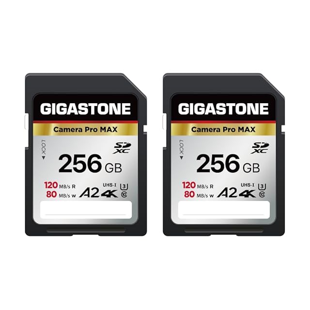 【5年データ復旧・無償交換】GIGASTONE SDカード 256GB 2個セッCamera Pro MAX SDXC UHS-I A2 V30 U3 C10 120 MB/s 高速 4K UHD & Full HD ビデオ Canon Nikon Sony Pentax Kodak Olympus Panasonicなど デジタルカメラ 一眼レフ対応 ミニケース2個付き
