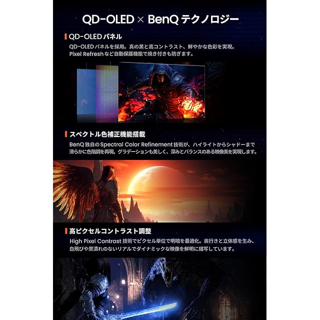 BenQ独自の「Smart Game Art」は数百タイトルのデータを活用し、アニメ調まで自動で映像スタイルを認識。制作意図を忠実に再現し、キャラクターや背景の魅力を余すことなく表現が可能。