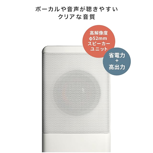【コンパクトに、いい音が聴ける】ボーカルや音声が聴きやすい高感度φ52mmスピーカーユニットを搭載し、長時間でも聴き疲れしないクリアな音質を実現。また、2W+2Wの出力ながら、高感度スピーカーユニットにより省電力でもナチュラルな サウンドを再生します。ステレオサウンドのためPCやポータブルプレーヤー自体で音を再生するよりも迫力のある立体感がお楽しみいただけます。観たい動画や映画をより聴きやすい音で再生できます。