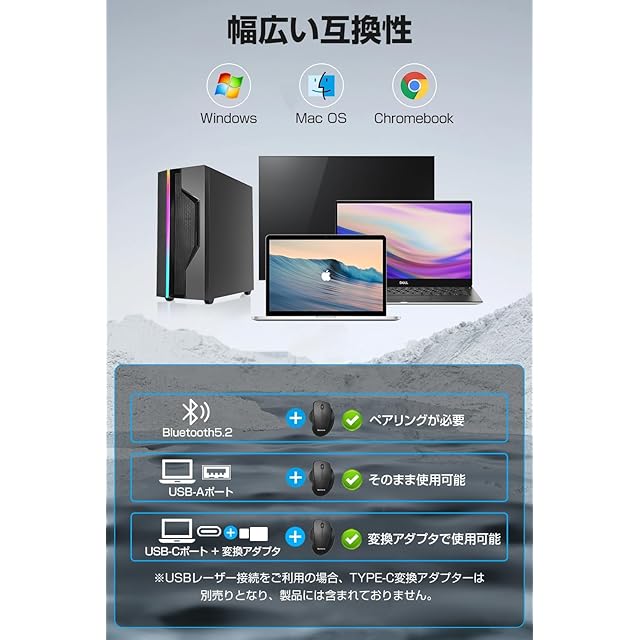 ⚡【USB Type-C充電式・省エネ設計】繰り返し使えるマウス 充電式 で、USB Type-C による急速充電に対応。わずか数時間の充電で長時間使用可能、面倒な電池交換は不要です。さらに、無操作時には自動でスリープに移行する省エネ設計。環境に優しく、持続的に使える ワイヤレス マウス 充電式 として、在宅勤務にも出張先にも頼れる マウス 無線 です。