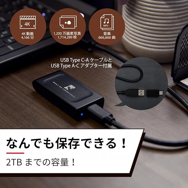 容量:1000GB (1TB)、インターフェイス:USB 3.2 Gen 2