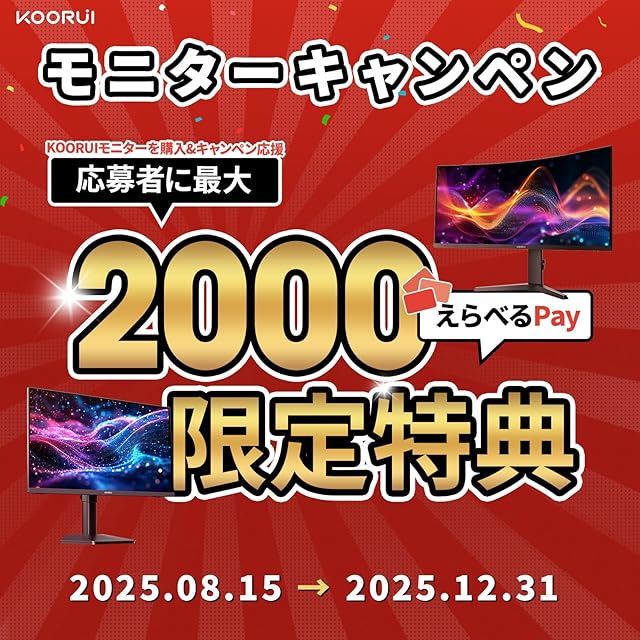 :3年(液晶パネル1年間)、パソコン3Rよりお申し込みいただけます。 KOORUIのモニターについては無償で回収・リサイクルいたします。