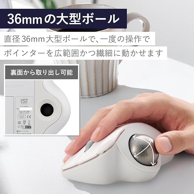 商品名:エレコム ワイヤレス トラックボールマウス IST 無線2.4GHz べリング支持 親指操作 36mmボール 5ボタン Windows Mac Chromebook ホワイト M-IT11DRWH