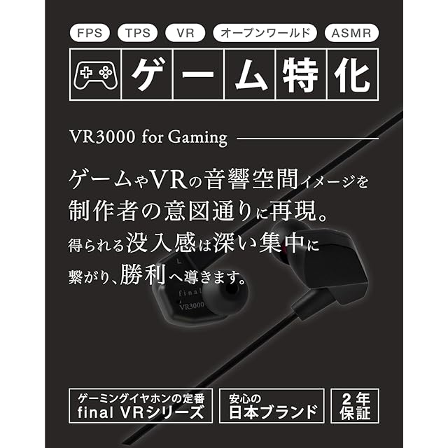 商品名:final VR3000 for Gaming e☆イヤホン限定カラー ホワイト&ブラック・有線ゲーミング イヤホン・バイノーラル3Dサラウンド・マイク付き 【ゲーム/VR/バイノーラル/ASMR / 360オーディオ推奨】