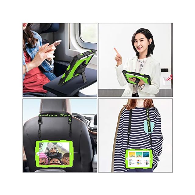 商品名:SEYMAC stock iPad 10.2インチ 第9世代/第8世代/第7世代 ケース 耐衝撃 保護フィルム付き ペン収納 360°回転スタンド ハンドストラップ ショルダーストラップ 全面保護カバー (グリーン+ブラック)