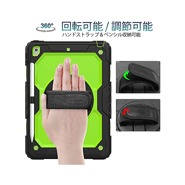 SEYMAC stock iPad 第9世代 8世代 7世代 ケース 耐衝撃 頑丈 落下保護 360°回転スタンド 調節可能 頑丈 丈夫 ハンドストラップ ペン収納 ショルダーストラップ ハード 全面 フィルム 衝撃保護 現場 工事現場用 子供 キッズ 蓋なし 横置き 縦置き iPad 9世代/8世代/7世代 10.2’’ 2021 2020 2019 ケース 10.2インチ A2602 A2603 A2604 A2605 A2270 A2428 A2429 A2430 A2197 A2198 A2200 ipadだい9世代 カバー ipad だい9世代ケース