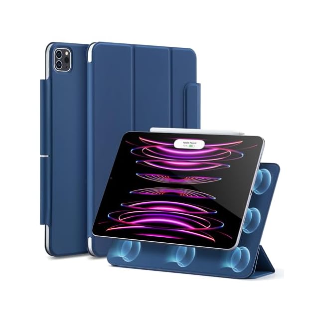 ESR iPad Pro 12.9 ケース (2022/2021/2020、第6/5/4世代) iPad Air 13インチ 専用カバー (2025/2024) マグネットス吸着式 Pencil2対応 三つ折りスタンド オートスリープ・ウェイク Rebound 磁気 ブルー
